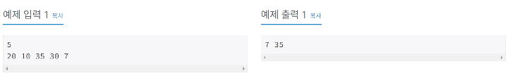 N개의 정수가 주어진다. 이때, 최솟값과 최댓값을 구하는 프로그램을 작성하시오.