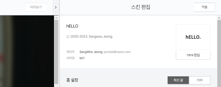 개발 블로그를 시작한 뒤로 너무너무 잘 쓰고 있는 hELLO 스킨